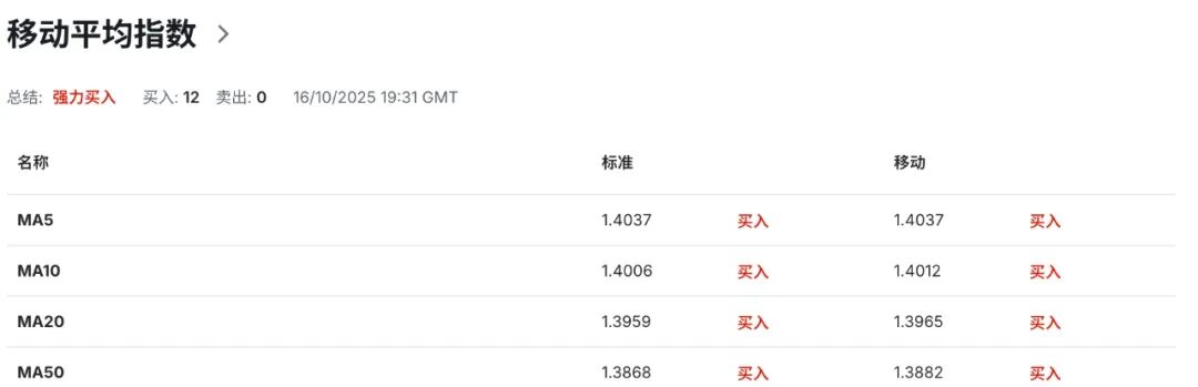 技术指标显示,日线级别布林带上轨切入点指向的1.4090区域水平为汇价提供短期动态阻力,布林带中轨运行线指向1.3945区域水平为其走势界定潜在强弱分化,布林带下轨指向的1.3800区域水平为汇价提供短期动态支撑。当前汇价运趋向于测试布林带上轨区域,显示多头动能占据主导优势。布林带开口呈现扩张状态,表明短期波动率有所上升。此外,14日RSI相对强弱指标由超买区域升至71.00附近深度超买区域,与布林带指标共同验证当前多头动能的强劲格局,但需警惕潜在的技术性回调需求。