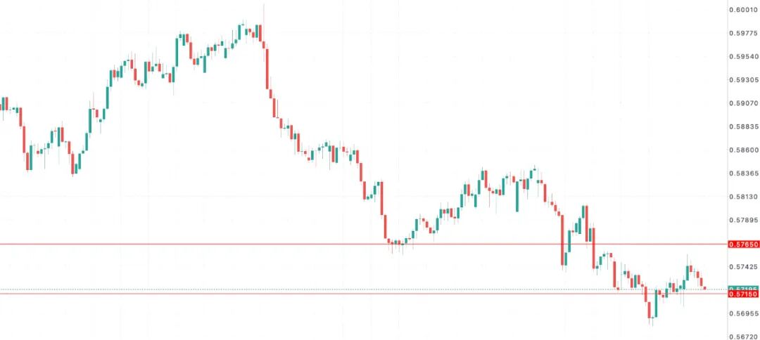 综合而言,当前纽币技术指标以及价格走势在双重维度上提示多头动能修复迹象初步显现,空头集中追击并在RSI指数触及30超卖临界点后呈现“衰减-撤离-反弹”链条式回温反应,当前市场“追空”情绪已较集中,空头集中抛售的边际效应在减弱,市场共识从“单边下行”向“弱反弹后再校准”微调,尽管整体价格走势结构仍以空头节奏为主导格局,但为其汇价短线反弹条件积累创造潜在空间。需要注意的是,纽币当前将面临的0.5760区域阻力将成为其进入偏强震荡格局的核心转折点。因此,如若纽币可在4小时级别收市期间进一步站稳至0.5760区域上方,则将有望强化多头动能修复格局,为汇价反弹测试0.5790目标区域提供积极信号。然而,如若纽币短线微调校准后再度回撤,则需紧惕0.5715区域防线被有效跌破后,汇价面临进一步下行测试0.5680目标区域的风险加剧。