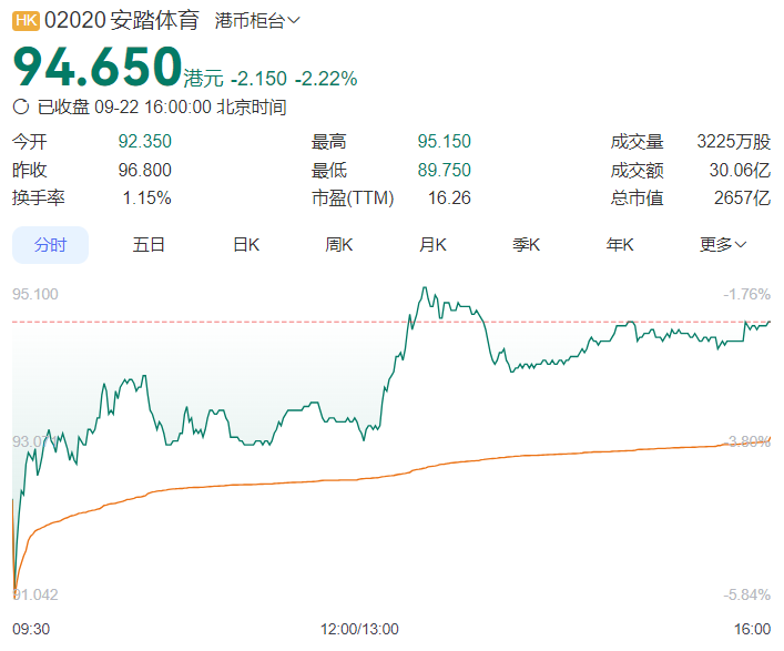 今早盘前,安踏体育股价大跌超5%,市值一度蒸发超156亿港元。尽管开盘后股价持续拉升,依旧跌去2.22%,市值没了60亿港元。