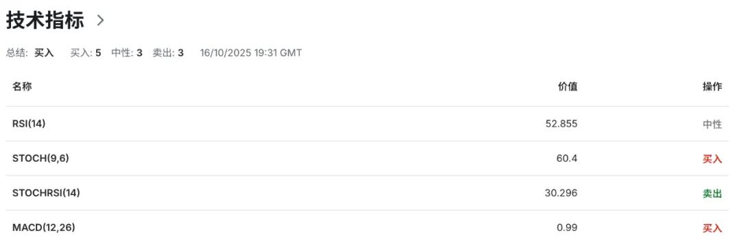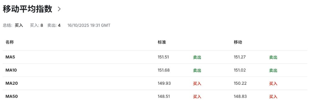 技术指标显示,日线级别布林带上轨切入点指向153.60区域水平为汇价提供短期动态阻力,布林带中轨运行线指向的149.70区域水平为走势提供潜在强弱分化,布林带下轨切入点指向的145.80区域水平为汇价提供短期动态支撑。当前汇价回落至布林带中轨附近区域运行,显示多头动能的放缓迹象。布林带开口呈现扩张状态,表明短期波动率有所上升。与此同时,14日RSI相对强弱指标降至53.45附近中性区域,表明当前多空力量维持相对均衡状态,汇价或面临阶段性方向选择。